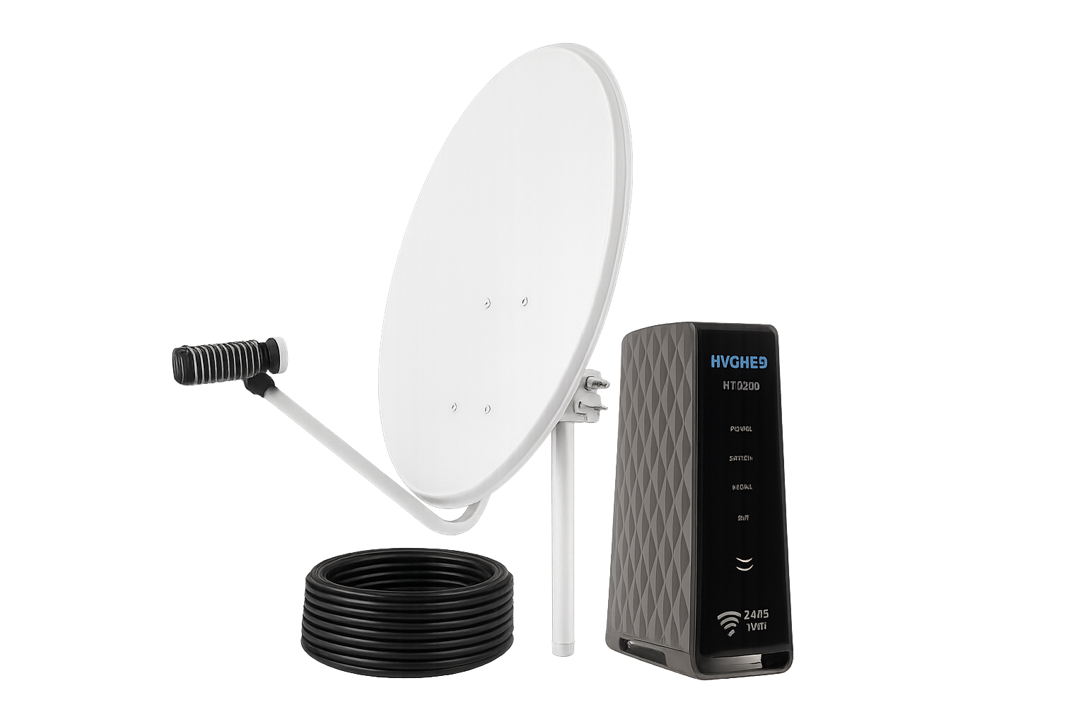 Solo necesitas una antena parabólica y un módem satelital para empezar a navegar.